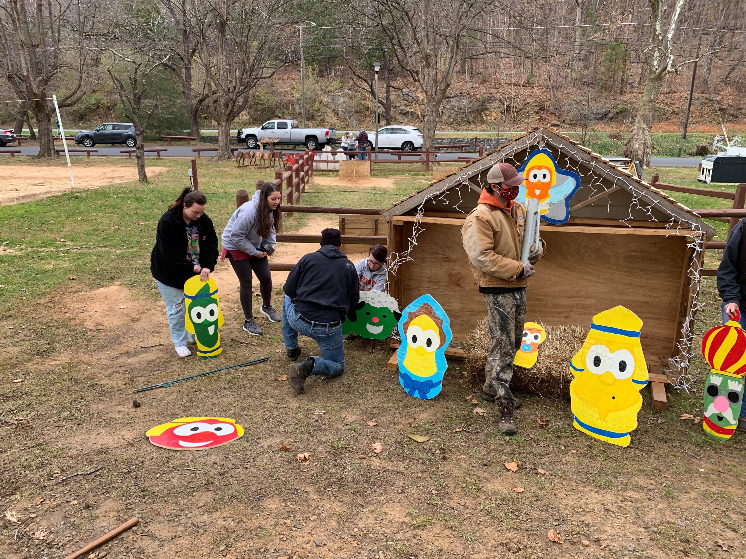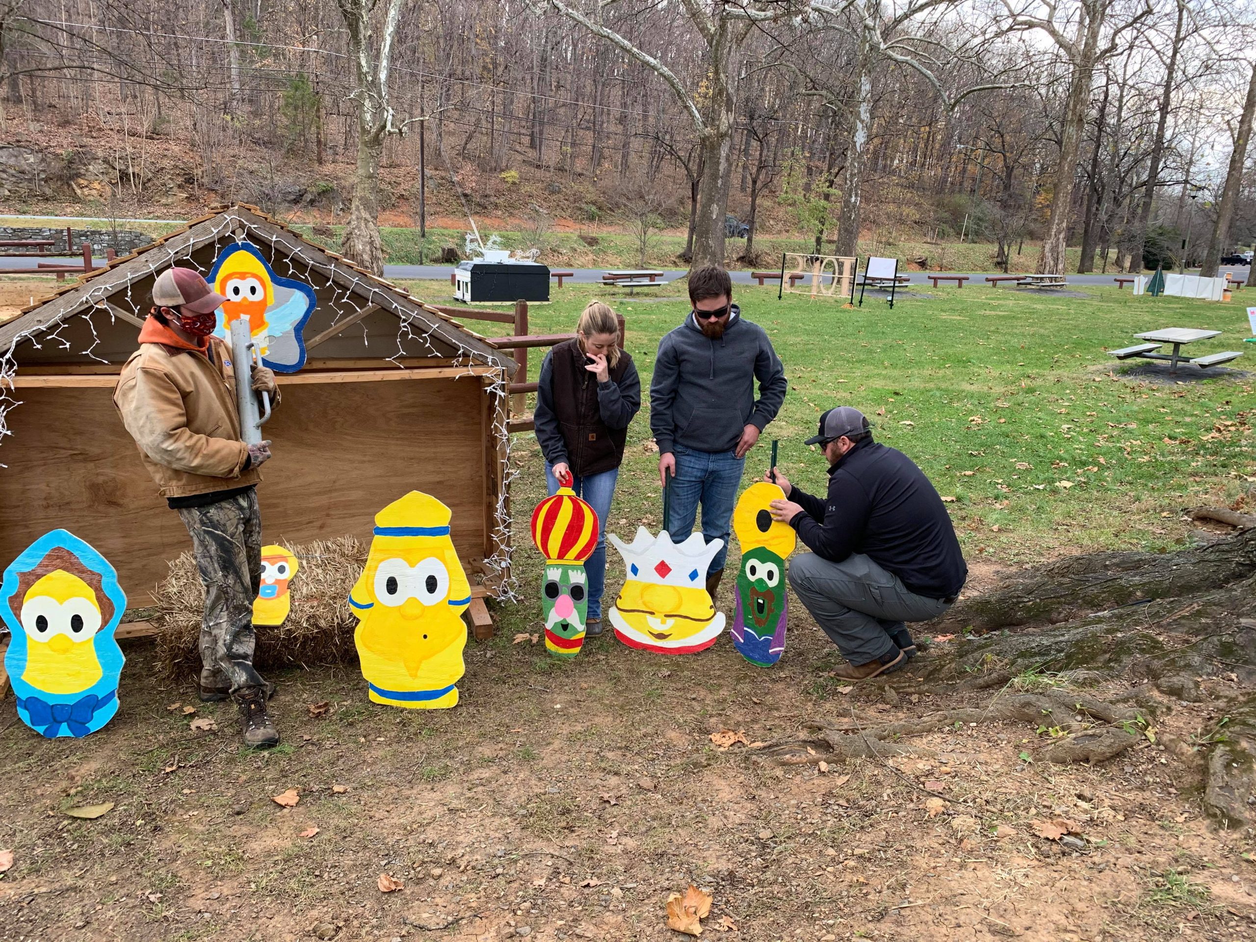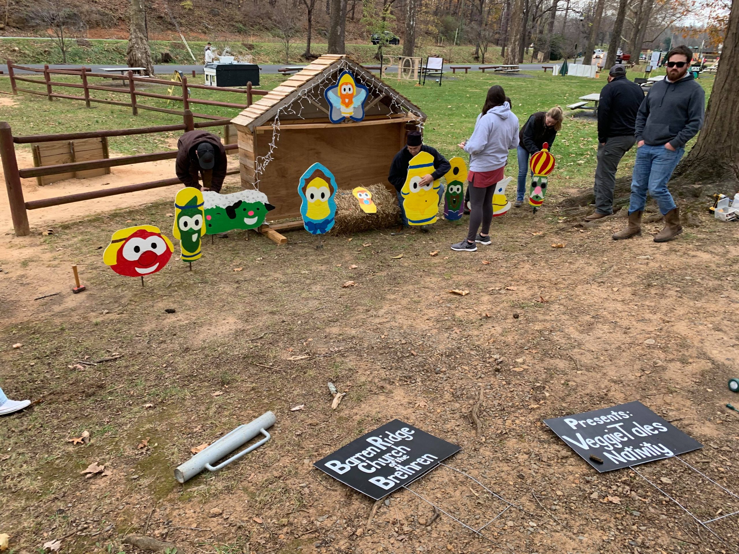 On Sunday November 22nd 11 members of the Christians In Action group set up the Celebration of Holiday Lights Display at Gypsy Hill Park for Barren Ridge Church. The display depicts a Veggie Tales Nativity Scene. The Celebration of Holiday Lights begins November 23rd. It ends on January 1st 2021. The displays will be lit from 5pm-11pm each evening. The event is free and open to the public. Visit the park one evening and drive through and see all the displays!
