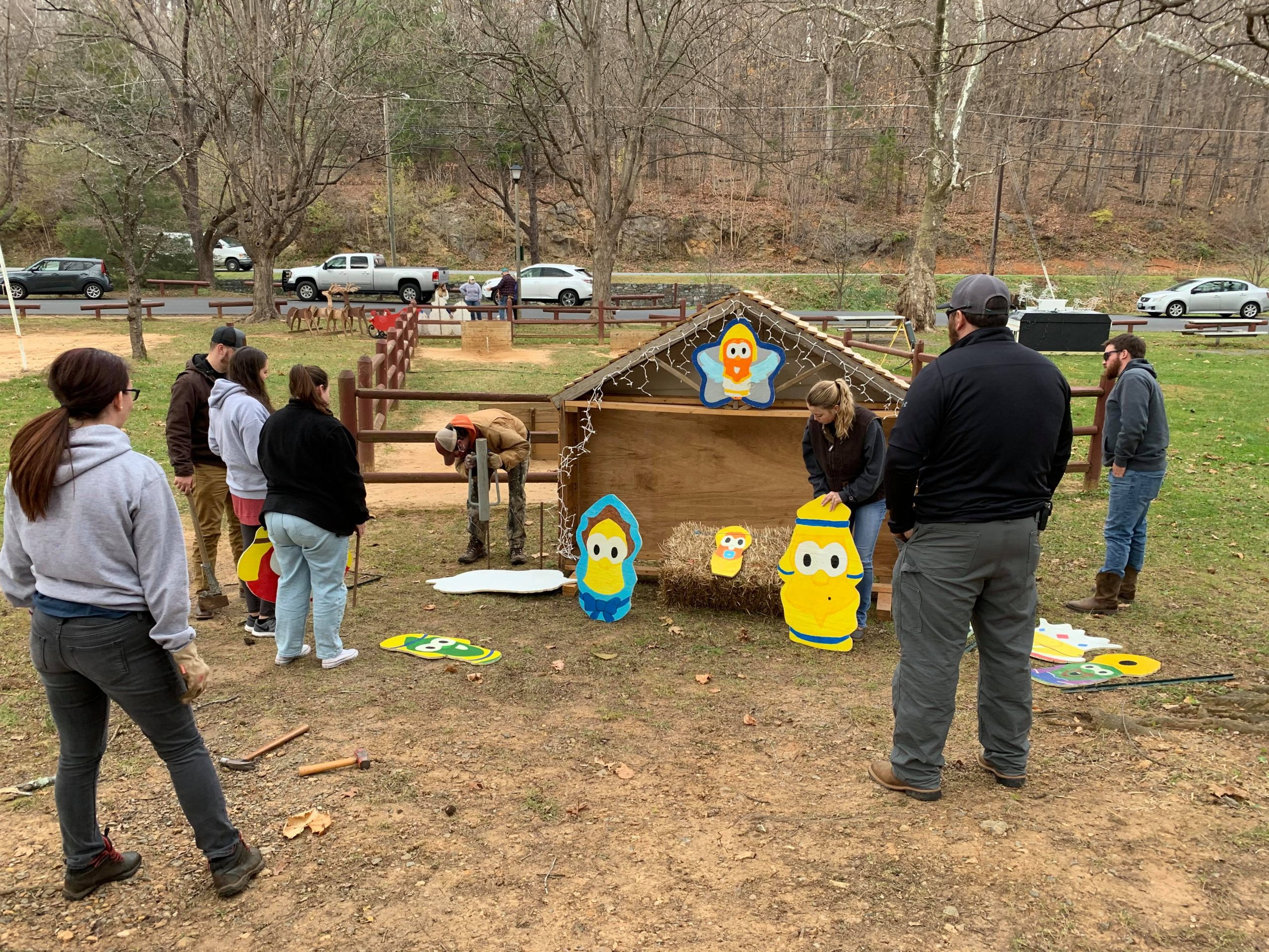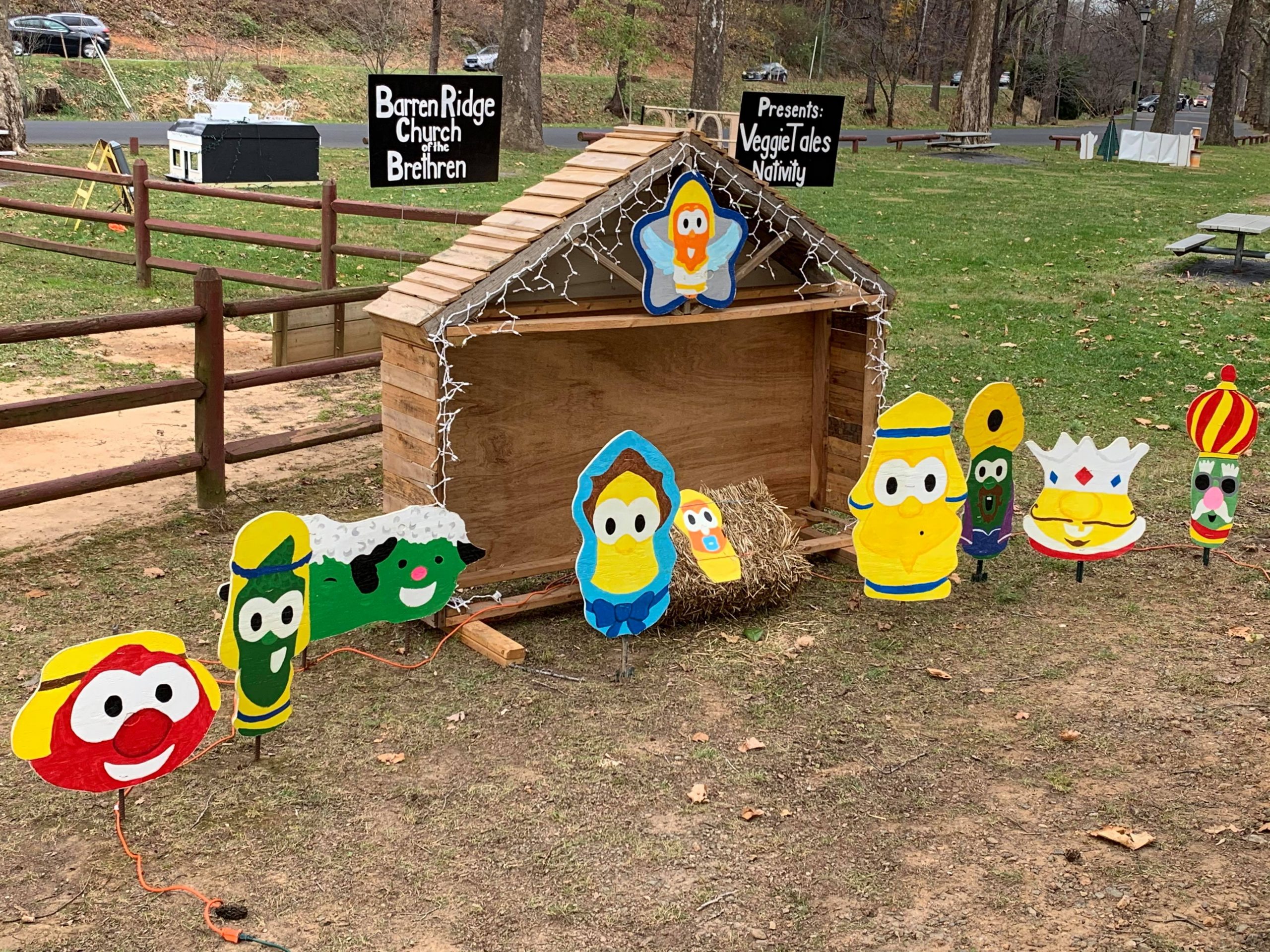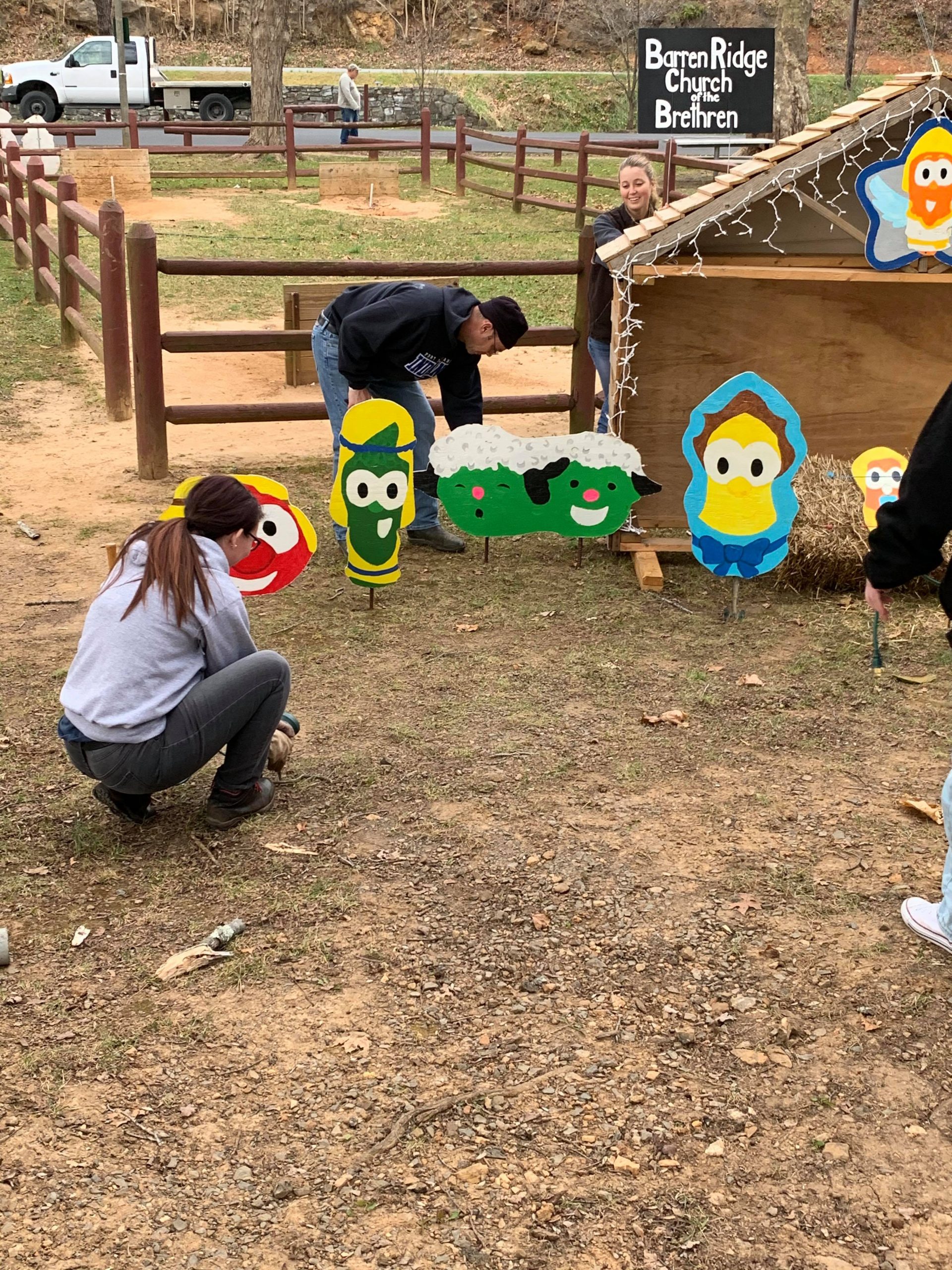 On Sunday November 22nd 11 members of the Christians In Action group set up the Celebration of Holiday Lights Display at Gypsy Hill Park for Barren Ridge Church. The display depicts a Veggie Tales Nativity Scene. The Celebration of Holiday Lights begins November 23rd. It ends on January 1st 2021. The displays will be lit from 5pm-11pm each evening. The event is free and open to the public. Visit the park one evening and drive through and see all the displays!